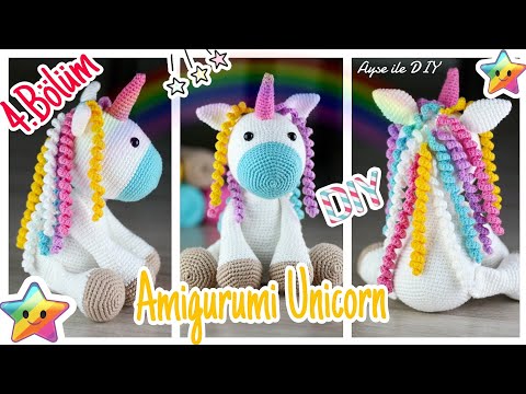 Amigurumi Unicorn Yapımı - Arka Bacak, Boynuz, Yele Yapılışı ve Birleştirme 4.Bölüm #ayseilediy