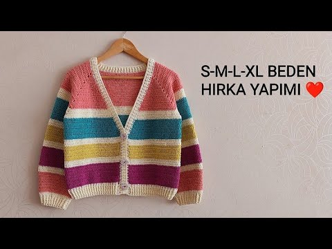EASY CROCHET S-M-L-XL BEDEN TIĞ İŞİ KOLAY V YAKA HIRKA YAPIMI.CROP