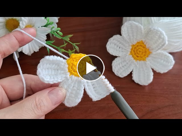 Making a gorgeous crocheted daisy motif✅️Tığ işi kolay örgü papatya çiçek yapılışı