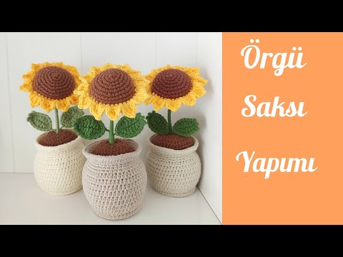 Örgü Saksı Yapımı / Kolay Örgü Saksı /Amigurumi Saksı / Making a Knitted Flower Pot / Ayçiçeği Saksı