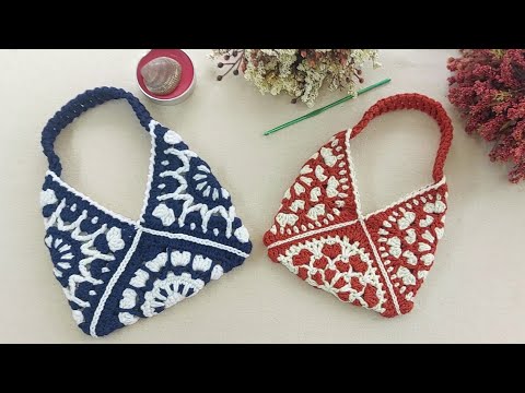 Crochet granny square bag. #crochetbag #easybag #crochet #easybagmaking #diycrochê #easycrochet