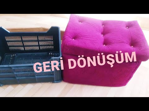 PLASTİK KASALARDAN SÜPER GERİ DÖNÜŞÜM. PARÇA KUMAŞ VE PLASTİK SEBZE KASASINDAN PUF YAPIMI.recycling