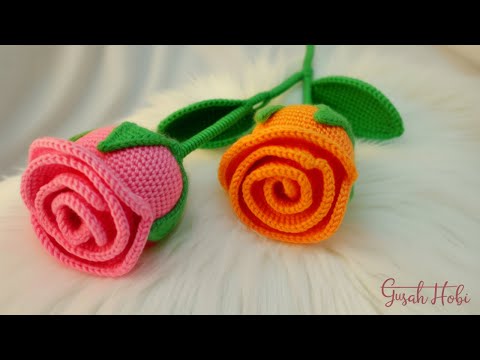 Tığ işi uzun saplı gül nasıl yapılır? how to crochet flowers, crochet tutorial rose,